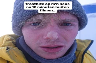 Блогер FrankVD — Фрэнк Вам Дам из Голландии приехал в Якутию чтобы испытать себя на прочность: он окунулся в прорубь, а во время одной из съёмок на улице обморозил нос.