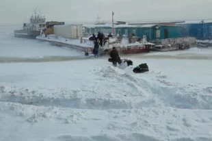 Сотрудники Службы спасения по республике Саха (Якутия) участвуют в спасении двух судов с экипажами кораблей, которые застряли во льдах на реке Лена в Булунском районе.