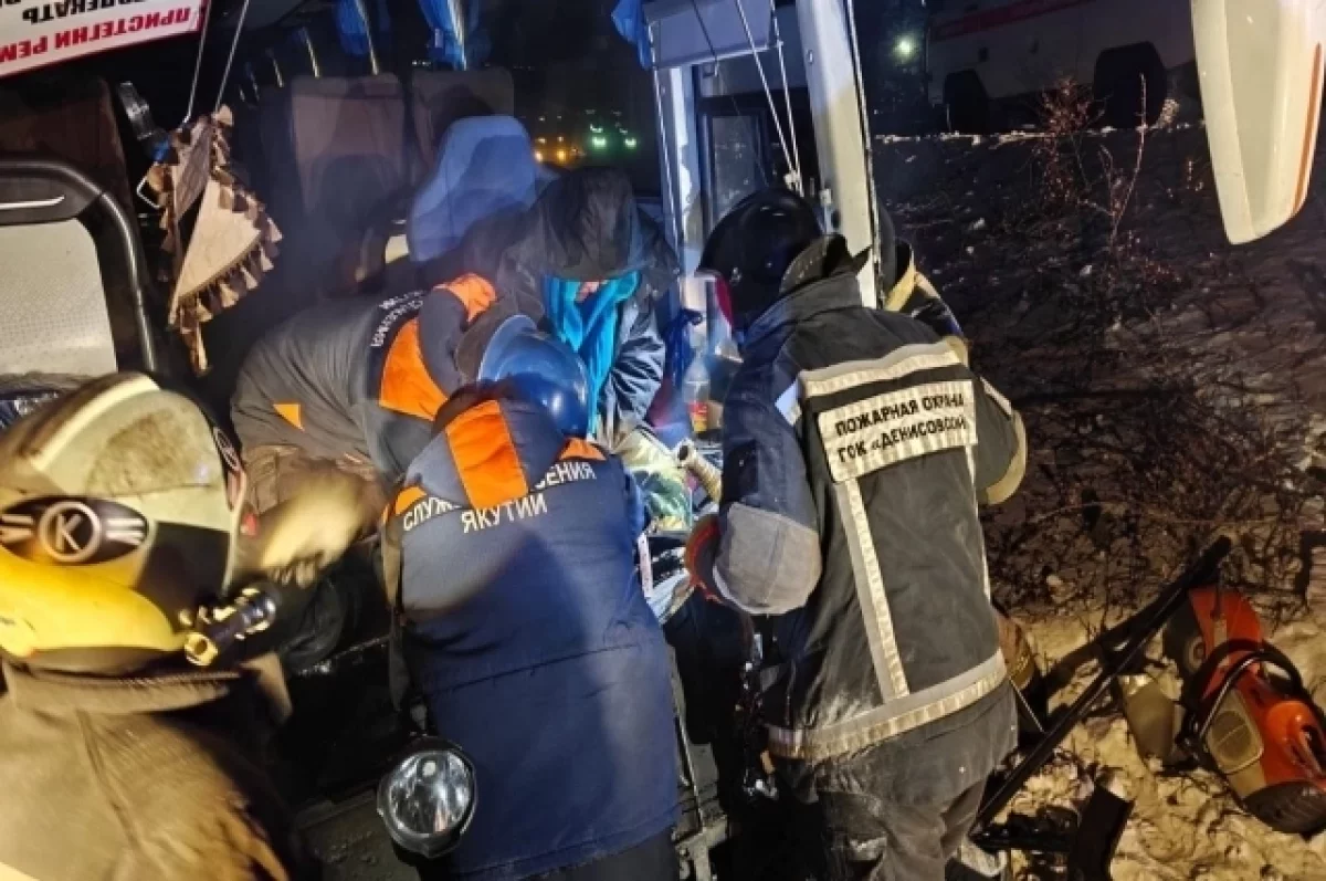 Автобус столкнулся с едущим впереди большегрузом, из-за чего водитель оказался зажат в кабине авто. Об этом сообщает служба спасения Якутии.
