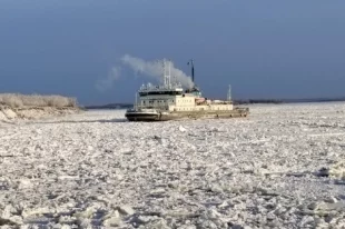 Чтобы возобновить грузовые перевозки по маршруту «Жатай — Техтюр», ледокол пробивает путь по реке Лене.