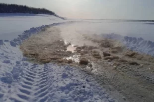 Из-за повышения температуры, образования наледей и промоин, запрещено движение транспорта на нескольких участках объездной дороги «Арктика».